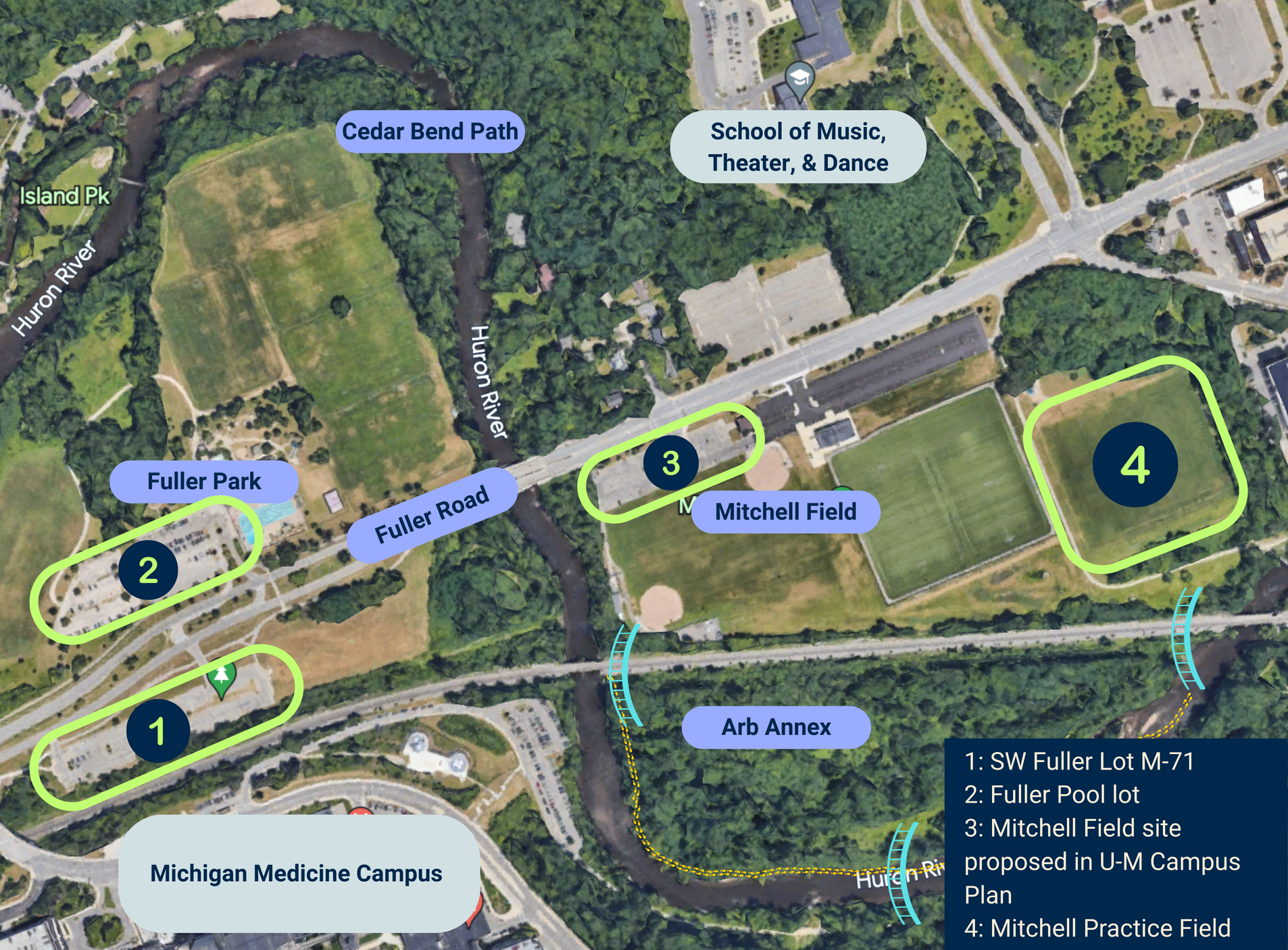 Together, these four sites create a 15-minute neighborhood with income-diverse housing above retail options walkable to North and Medical Campuses from what is currently an auto-dependent dead zone. Imagine a mini downtown within walking distance of beautiful riverside parks and trails. Cities worldwide utilize their rivers to enhance lives through experiences, walkability, and nature. Why should Ann Arbor be any different?